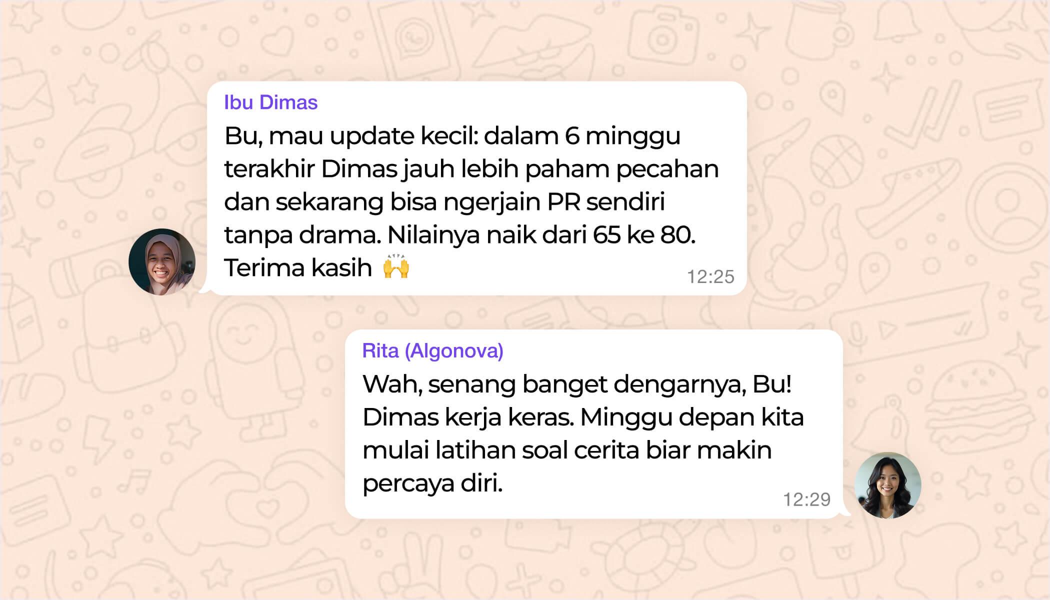 Anda akan selalu tahu bagaimana kemajuan anak. Laporan mingguan, komentar tutor, dan akses chat yang mudah membantu Anda mengikuti proses belajarnya, agar setiap pencapaian kecil bisa dirayakan bersama.