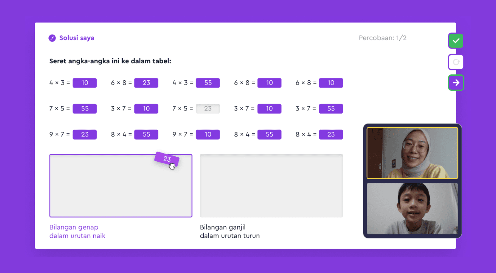 Anak akan mengikuti kelas langsung di platform Algonova. Mereka memecahkan soal di papan virtual, berbagi ide, serta tetap aktif lewat polling dan diskusi interaktif selama pelajaran.